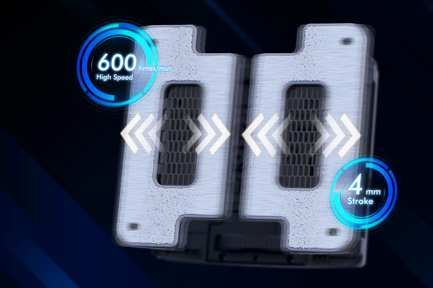 Sklenené povrchy čistí unikátnym systémom dvoch obojstranne kmitajúcich utierok. Utierky kmitajú rýchlosťou 600 kmitov za minútu a efektívne odstráni šmuhy, otlačky prstov aj mikroskopický prach.