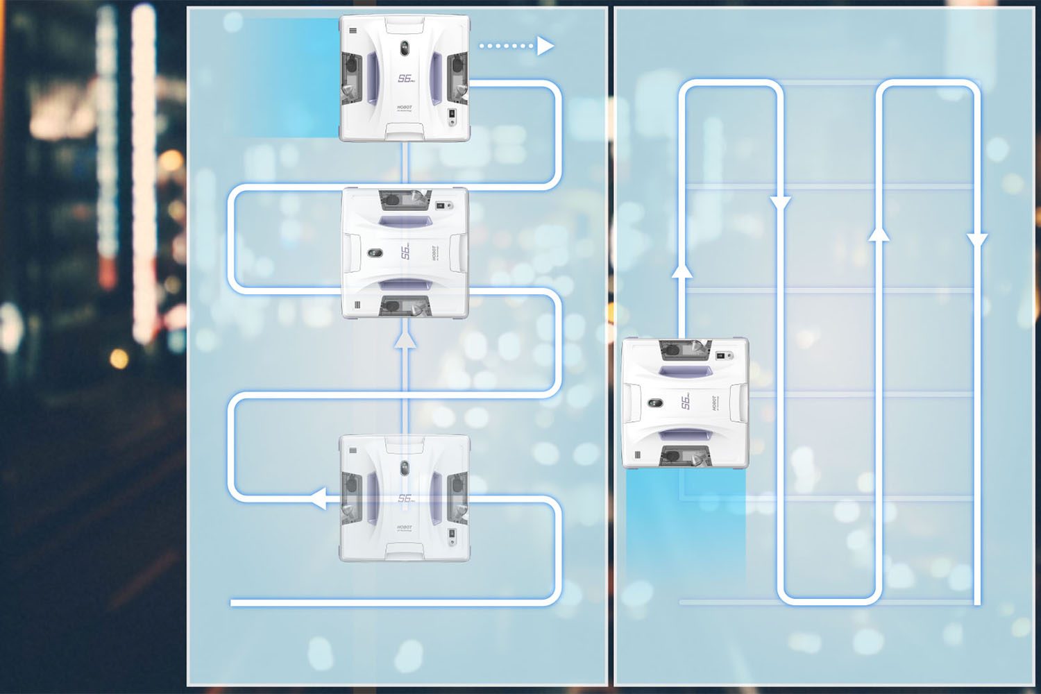 HOBOT S7 PRO využíva systém inteligentného plánovánia trasy a je naprogramovaný tak, aby pracoval v zigzag režime nejskô horizontálne a potom vertikálne. Systematicky čistí okná bez vynechania jediného miesteča.k HOBOT S7 PRO automaticky rozpozná veľkosť čisteného povrchu a zvládne vyčistiť veľké plochy o šírke až 5×6 m rýchlosťou 2,6 m2 za minútu.